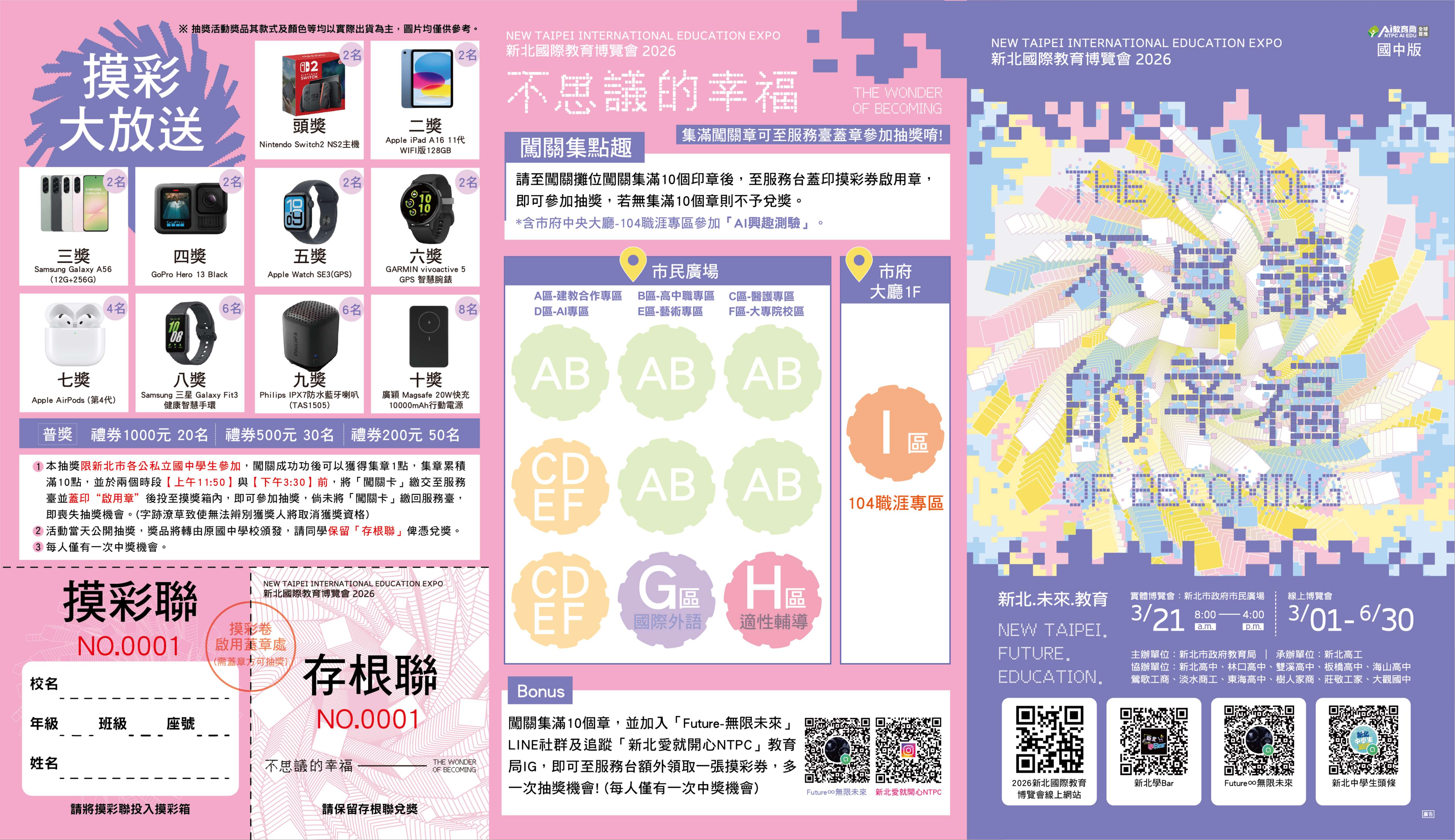 2.本次闖關抽獎活動有Switch、iPad 11、Apple Watch及Airpods等多項大獎,新北市國高中學生不分年級皆能參加抽獎活動,